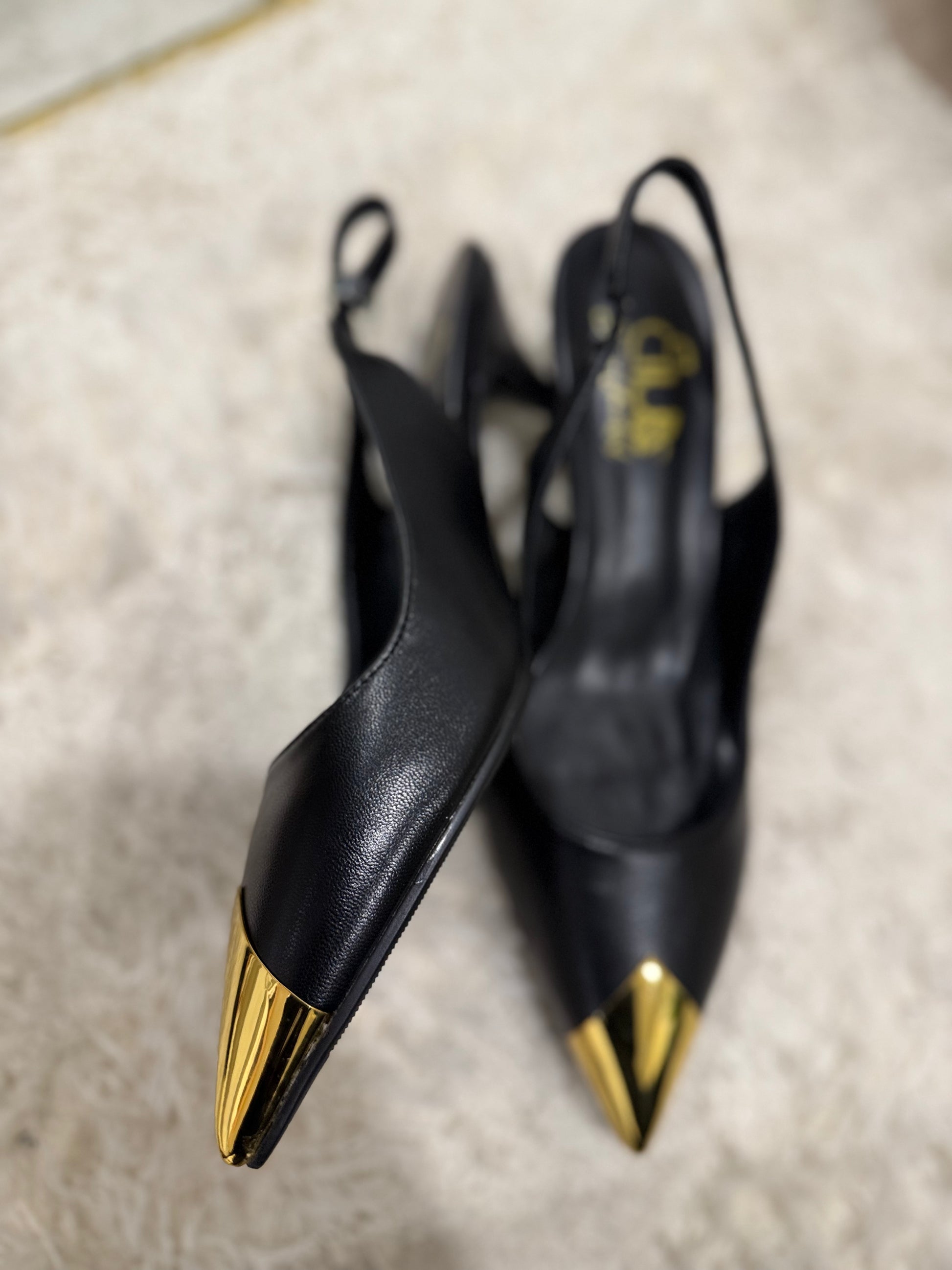 Style: Pointed slingback heel (mid-heel height)