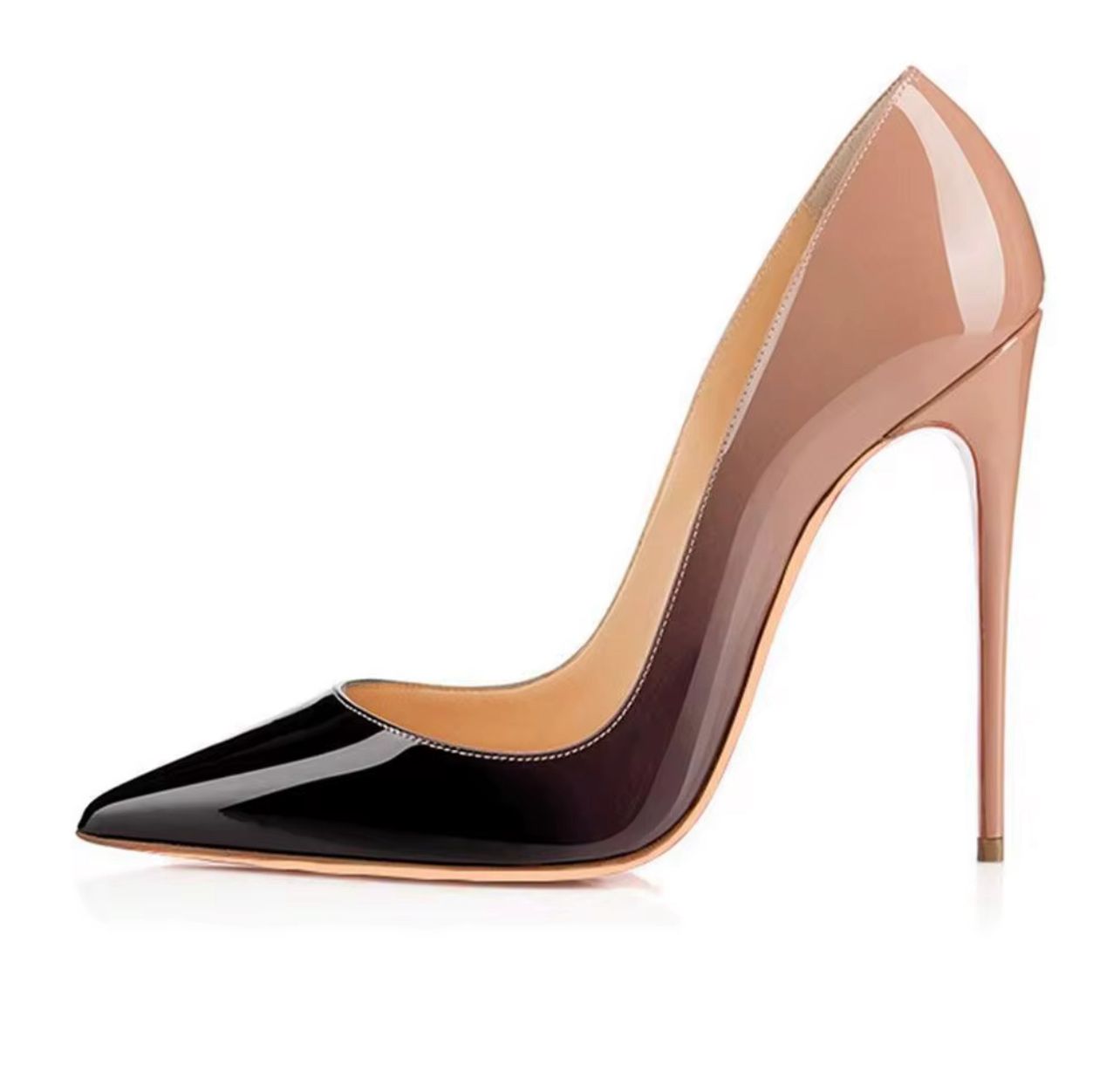 Command the room with The Ombre Grace, a stiletto heel that transitions seamlessly from deep black to soft nude. Perfectly polished with a pointed toe and high-gloss finish, this pump pairs sophistication with versatility. Ideal for boardrooms, date nights, or red carpets.